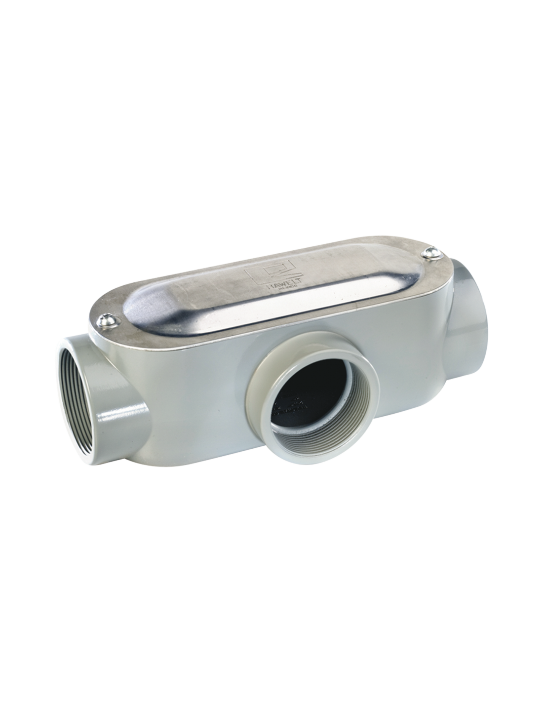 Caja oval roscada tipo T de 1 1/4" (31.8 mm) incluye tapa y tornillos.