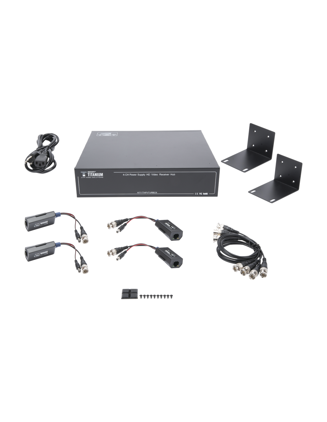 Kit de TRANSCEPTOR ACTIVO DE 4 CANALES / VIDEO+PODER en un solo Cable UTP / 150 metros en 4K, 200 metros en 5 MP/ Envía 36 Vcc y Recibe 12 Vcc / TODO INCLUIDO PARA RACK / Compatible con cámaras HD-TVI/CVI/AHD/CVBS / INSTALACIÓN LIMPIA